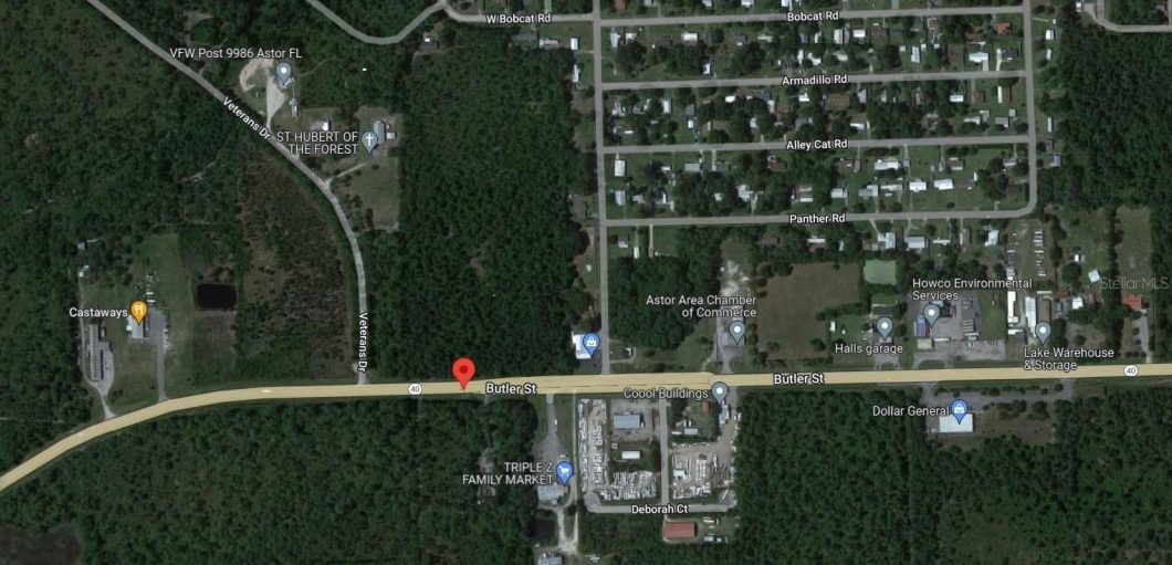 Under contract-accepting backup offers. 20 Acres on busy SR 40 in Astor. Currently zoned Agricultural. Perfect for rezoning and redevelopment for commercial or multi-family use.